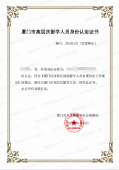 廈門市高層次留學(xué)人員身份認(rèn)定證書